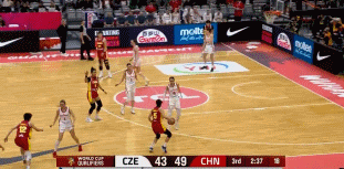 上半场中国女篮37-30领先捷克女篮,双方外线准星均低迷,中国女篮三分10中1,捷克女篮三分14中1。