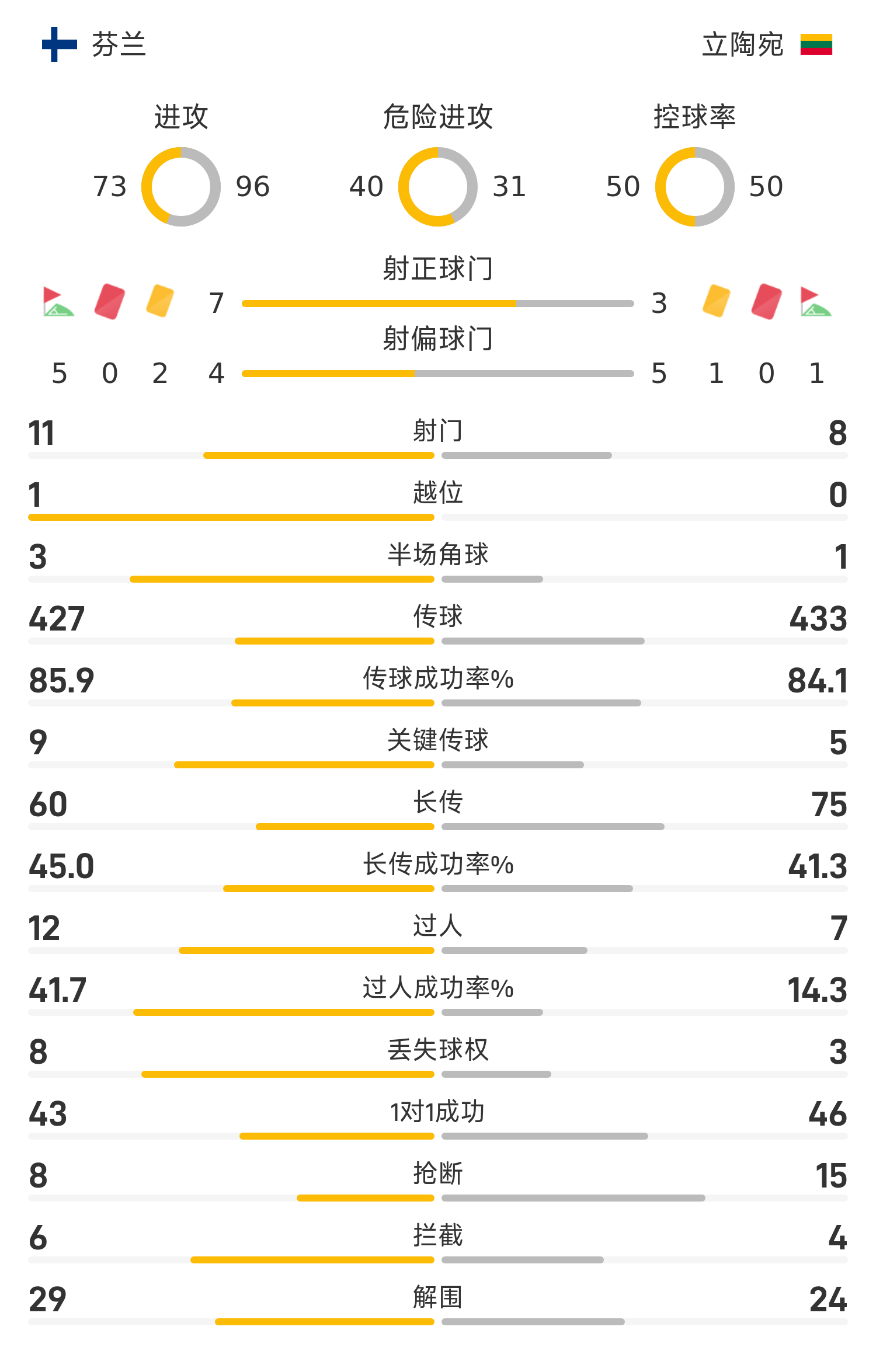 芬兰首发阵容:12-辛尼萨洛、17-阿尔霍、4-伊万诺夫、21-科斯基、5-拉赫滕迈基(83’3-斯塔尔)、14-凯里宁、9-沃尔塔(83’2-佩尔托拉)、11-马基耶夫(61’8-罗德)、20-波赫扬帕洛、19-考尔曼(65’22-泰尔霍)、7-安塔曼(83’16-凯斯基宁)